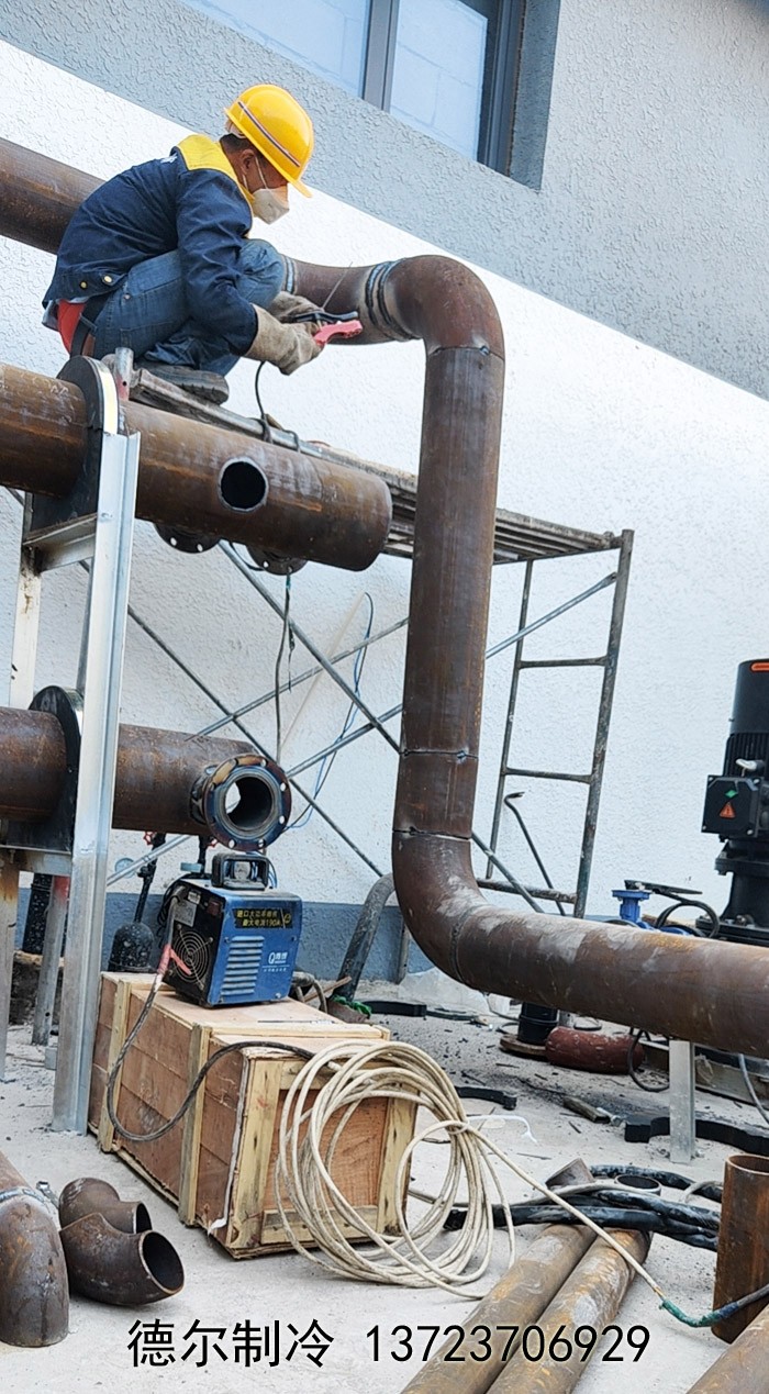 在下面的這張照片中,德爾制冷的工作人員的著裝,一眼就能看出北京3A冰上空間滑冰場(chǎng)是在特殊時(shí)期建設(shè)的。我們的工程施工人員正在進(jìn)行管道焊接與施工。